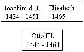 Um die Mitte des 15. Jahrhunderts wurde das pommersche Herzogshaus von der immer wieder auftretenden Pest stark ergriffen. 1451 starb nicht nur Joachim von Stettin, sondern auch Barnim VIII. von Barth. Während das Wolgaster Gebiet nun in der Hand Wartislaws IX. vereinigt wurde, hatte Joachim seinen unmündigen Sohn, Otto III., hinterlassen. Für ihn übernahm seine Mutter Elisabeth, Tochter des Markgrafen Johann von Brandenburg, die Regierung. Die Vormundschaft über den kleinen Otto III. war Kurfürst Friedrich II. von Brandenburg, seinem Onkel, übertragen. 2)