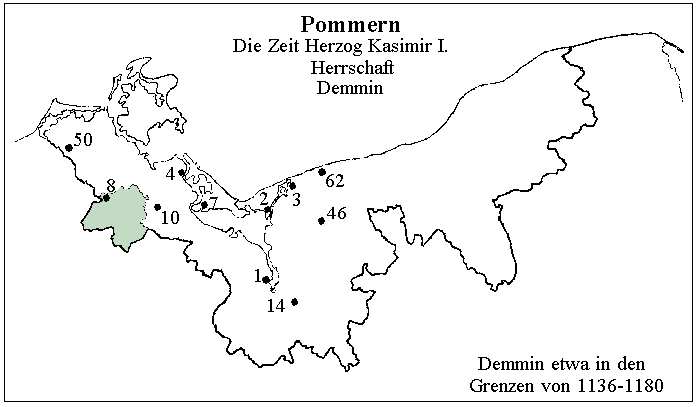 Seit 1155 teilten sich die Söhne Herzogs Wartislaw I., Bogislaw I. und Kasimir I., die Herrschaft über den zwischen Oder und Persante gelegenen Besitz.