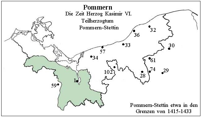 Auch die Stettiner Herzöge Otto II. und Kasimir VI., die ihrem Vater Swantibor I. nach dessen Tod im Jahre 1415 in der Herrschaft folgten, schlossen im selben Jahr mit dem neuen Herrn von Brandenburg Frieden.