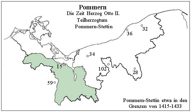 Nach einigen weiteren Grenzkämpfen einigten sich Pommern und Brandenburg, verliert Pommern 1427 einen Teil der Uckermark mit Angermünde an Brandenburg. 2)