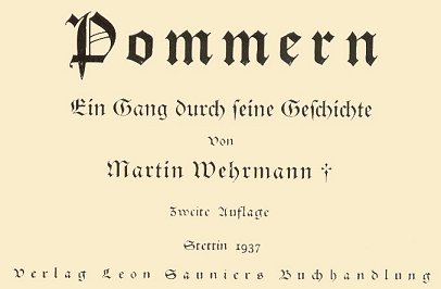 Pommern ein Gang durch die Geschichte von Martin Wehrmann; 1937 |