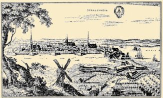 ![]() Ansicht von Stralsund. Nach einem Stich von Matth. Merian, Mitte des 17. Jahrhunderts. |