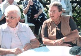 Käte und Ilza warten ab bis die Schlange etwas abgenommen hat. Es ist genug da, jeder bekommt Eis satt. |