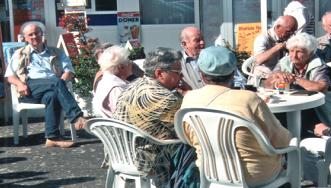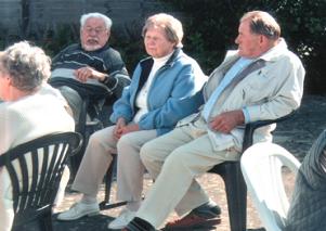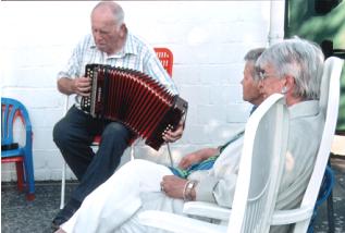 Kuddel spielt noch etwas auf der Quetschkommode, das lockert alles noch etwas auf, Elke und Rosemarie hören zu. |