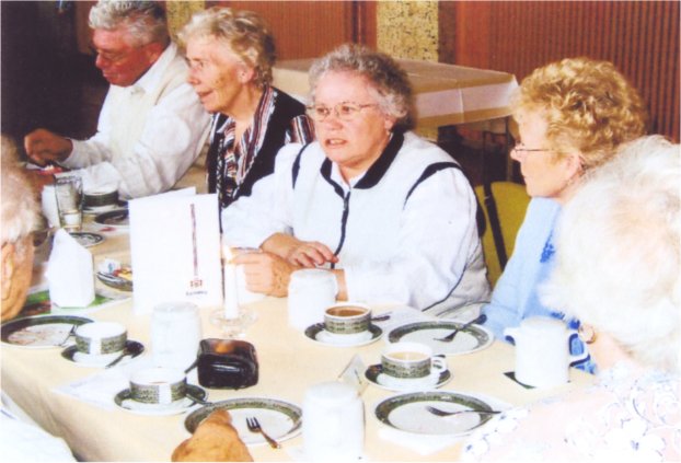 Hier sitzen am Tisch vorne, v. l. Klaus Schaarschmidt, Ilza Vanselow, Käthe Rupp, Inge Uhlmann, geb. Malchow und Karl Mollau. |