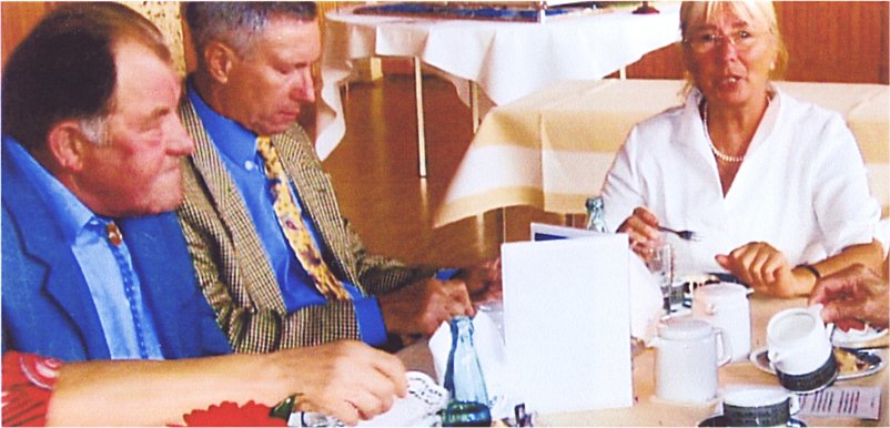 Na Willi, rechts, du siehst schon recht müde, abgespannt aus. Rechts neben ihm die Dame, den Namen habe ich vergessen, gehört aber zu Mienert von der Post. |