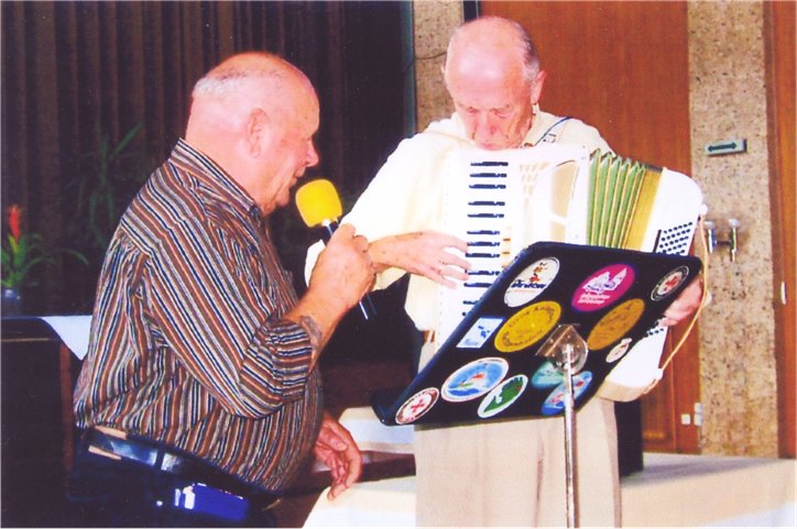 ![]() | Klaus Selke hat das Schifferklavier hervor geholt und Heinken Rades wird ihm mit Gesang begleiten. Doch der Clou aller Vorträge, sollte der Vortrag mit Kuddl und Lilo sein. Was Lilo da aus sich selbst herausgeholt hat, war bewundernswert. |